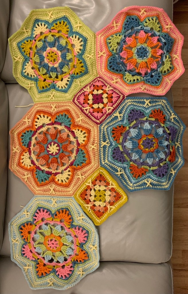 This is 100% a labor of love that makes me feel good whenever I’m working on them. Finishing a quilt top from a family member. Using two different sewing machines for some of the tops, one that very same family member bought me 30 years ago, and another that my boyfriend researched for me when mine broke during the pandemic. Using up leftover yarns from other loved projects. Ultimately (hopefully) bringing some happiness to someone else.